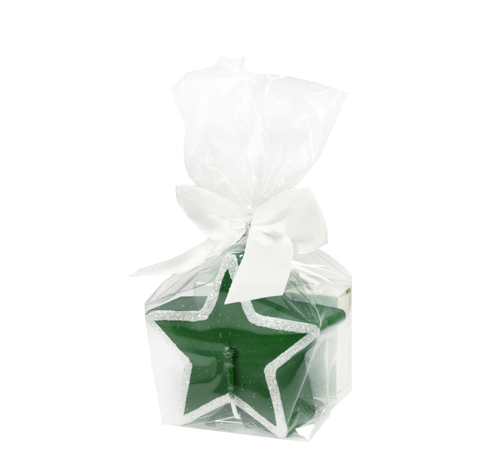 SVÍČKA GIFT SET VÁNOČNÍ HVĚZDA zelená metal + zápalky