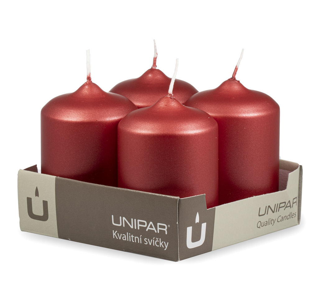 Adventní svíčky ve červené metalické barvě 60x90 mm